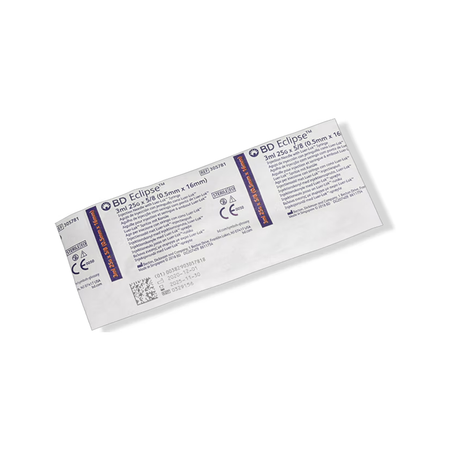 BD Eclipse™ Needle and Syringe – 3 mL BD Luer-Lok™ Syringe with Detachable 25 G × 5/8 in. Eclipse™ Needle provides dependable safety and comfort for medication administration. Its integrated Eclipse™ shield protects clinicians from needlestick injuries, and the Luer-Lok™ connection offers a secure fit for controlled delivery.