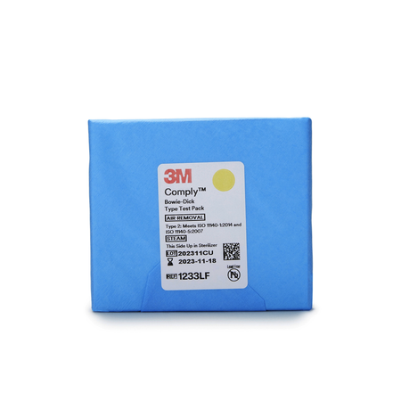 3M™ Comply™ Bowie-Dick Type Test Pack (AAMI Type 2) is designed for routine testing of dynamic-air-removal sterilizers to verify adequate air removal and steam penetration. This pre-assembled, disposable test pack ensures consistent and reliable monitoring in compliance with AAMI standards.