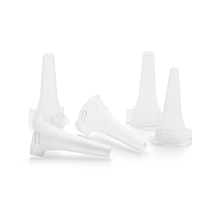 Welch Allyn Disposable Ear Speculum Tips, Adult 4.25 mm These clear, single-use ear specula are designed for reliable performance and infection control in clinical settings. Compatible with all Welch Allyn otoscopes, the clear tips provide up to 4x the light output of standard black tips for brighter, clearer visualization of the ear canal.
