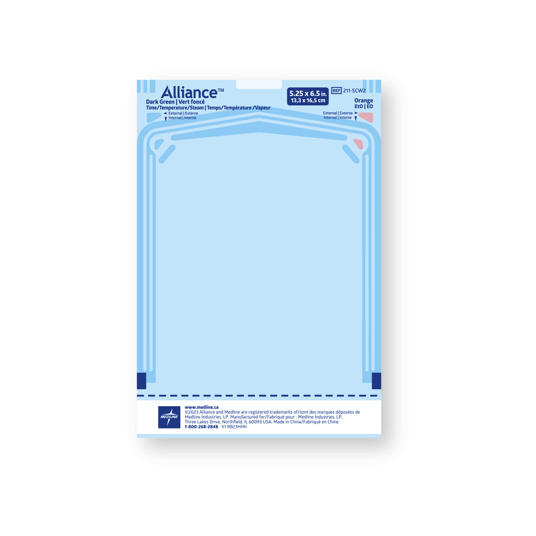 Alliance™ Self-Sealing Steam Sterilization Pouches, Class 4 provide reliable multi-parameter chemical monitoring and secure packaging for instruments during steam or ethylene oxide (EO) sterilization. Constructed with a durable blue-tinted film and medical-grade paper, these single-use pouches feature both internal and external indicators for complete sterilization assurance.