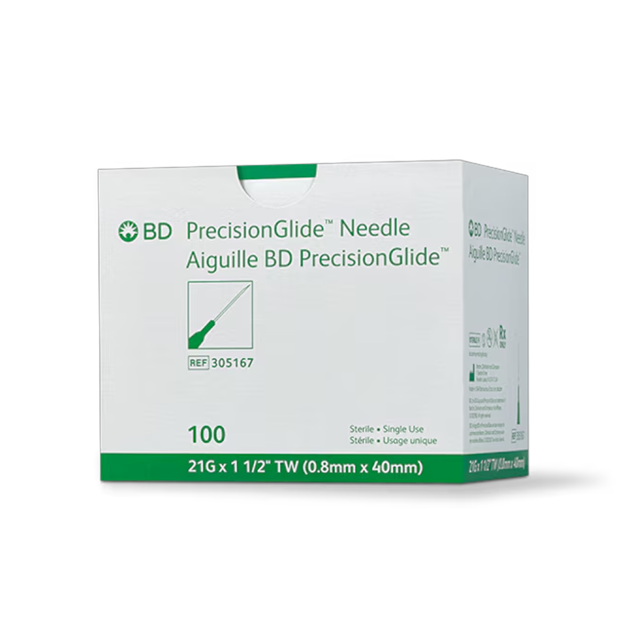 The BD PrecisionGlide™ Needle is engineered for precision, comfort, and consistent performance in general-use clinical applications. Incorporating BD’s proprietary thin wall technology, a regular bevel tip, and a specialized lubricant, this needle is designed to ensure smooth, controlled penetration with minimal patient discomfort.
