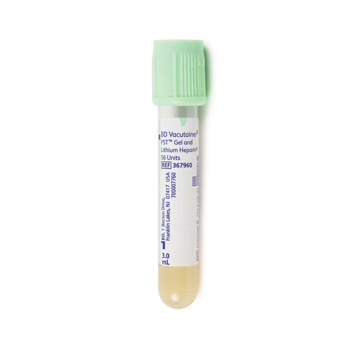 BD Vacutainer PST Plastic Blood Collection Tube 3.0 mL, 13x75 mm, Light Green Hemogard Closure (367960)
