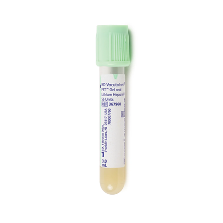 The BD Vacutainer PST Plastic Blood Collection Tube 367960 is designed for reliable plasma separation and consistent performance in clinical and laboratory environments. This 3.0 mL, 13x75 mm tube features a light green BD Hemogard safety closure that helps reduce aerosol exposure and improve handling safety.