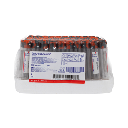 The BD Vacutainer SST Plastic Blood Collection Tube 367988 is designed for high-volume serum collection and efficient sample processing in clinical and laboratory environments. This 8.5 mL, 16x100 mm tube features a red and gray conventional closure that provides a secure seal and dependable handling during blood collection and transport.