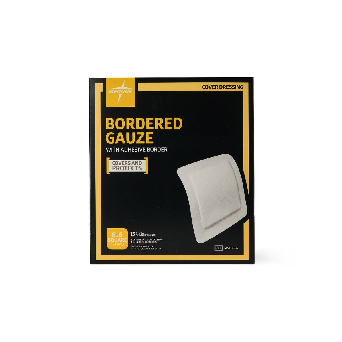 Medline Bordered Gauze Adhesive Island Wound Dressings are sterile, all-in-one dressings designed to protect lightly to moderately draining wounds. Each dressing features a soft, non-adherent gauze pad surrounded by a secure adhesive border that helps seal out contaminants while keeping the dressing comfortably in place. The absorbent pad wicks away exudate to maintain a clean, moist wound environment that supports faster healing.