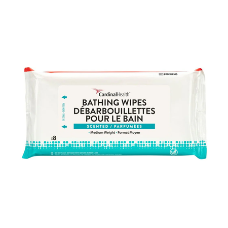 Cardinal Health Scented Bathing Wipes Medium Weight, 7.8" x 7.8" (20 x 20 cm) 8 Wipes per Softpack