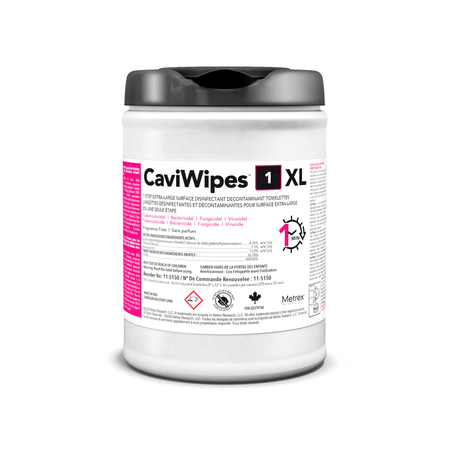 CaviWipes1 XL Surface Disinfecting Wipes, 9" x 12" (Item Code: 11-5150) are fast-acting, ready-to-use surface disinfecting wipes designed for professional use in healthcare, dental, and emergency settings. Each durable 9" x 12" wipe cleans and disinfects hard, non-porous surfaces in one easy step, killing 99.9% of bacteria, fungi, and viruses in just one minute.