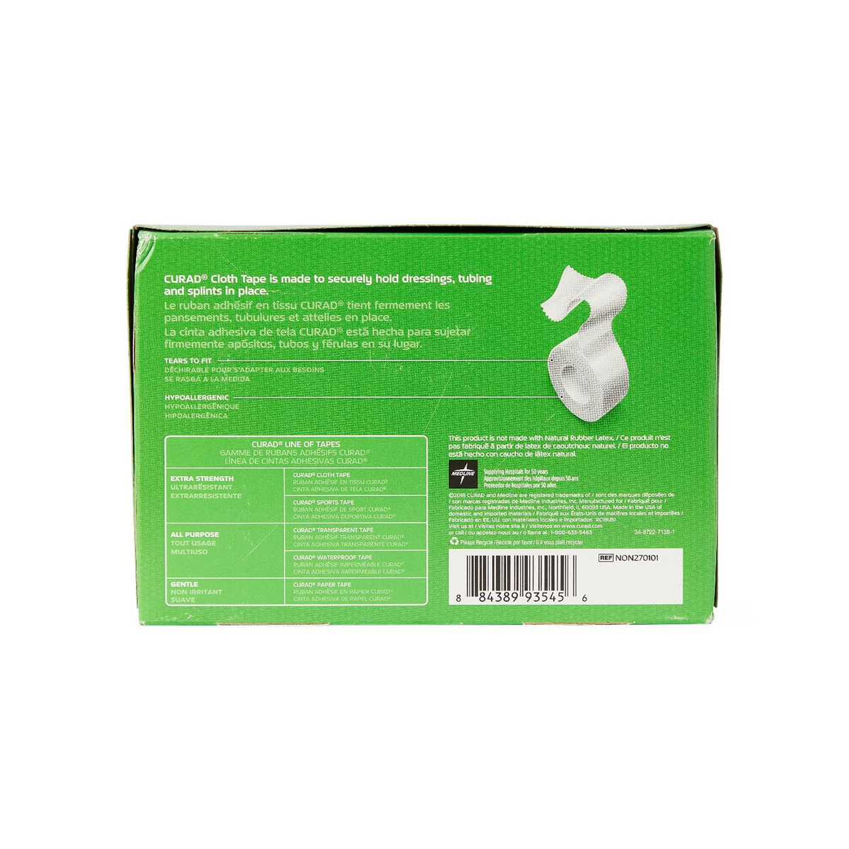 Specifications: CURAD® Premium Cloth “Silk” Tape, 1" x 10 yd.; water-repellent, durable, latex-free; 12 rolls per box, 10 boxes per case (120 per case).