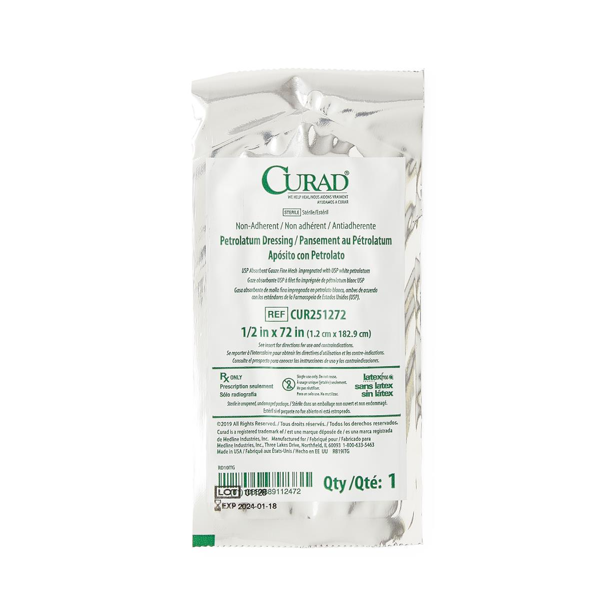 CURAD Non-Adhesive Sterile Overwrap Petrolatum Gauze, 1/2" x 72" (1.25 x 180 cm)