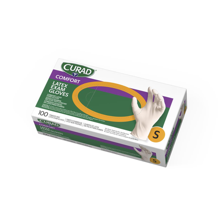 CURAD Powder-Free Latex Exam Glove, Beige Small