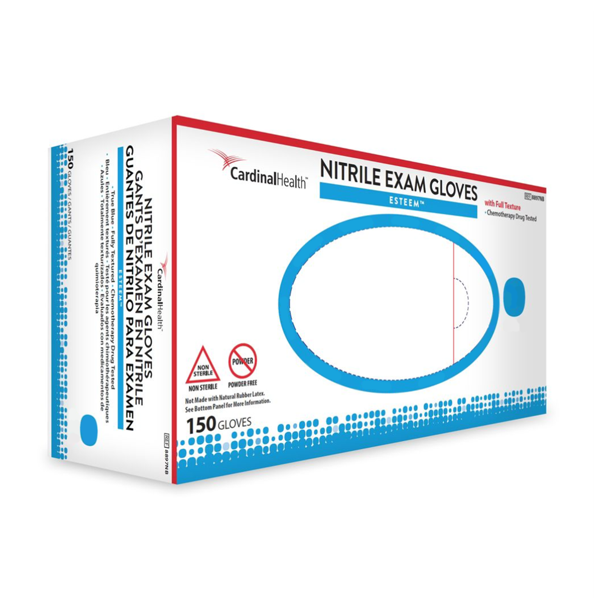 Cardinal Health™ ESTEEM™ Nitrile Exam Gloves combine reliable strength with dependable protection in a standard cuff length. Designed for everyday use, these gloves provide durability while supporting comfort and tactile sensitivity.