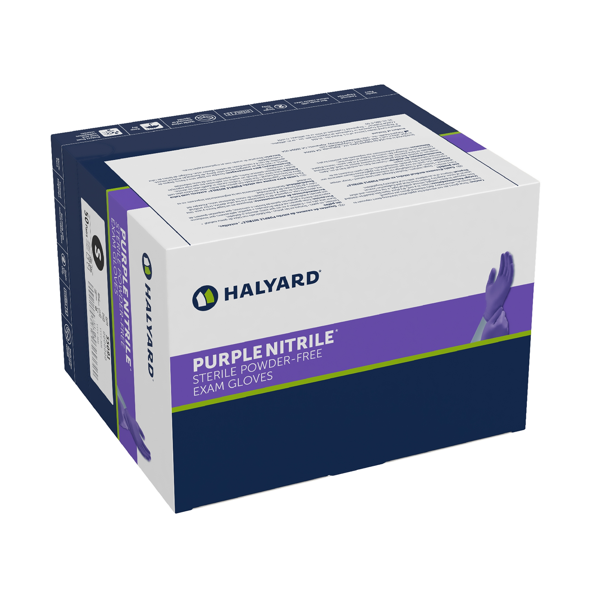 Halyard Purple Sterile Nitrile Exam Gloves, Powder-Free 9.5" Cuff, Size S (Pair Packs)