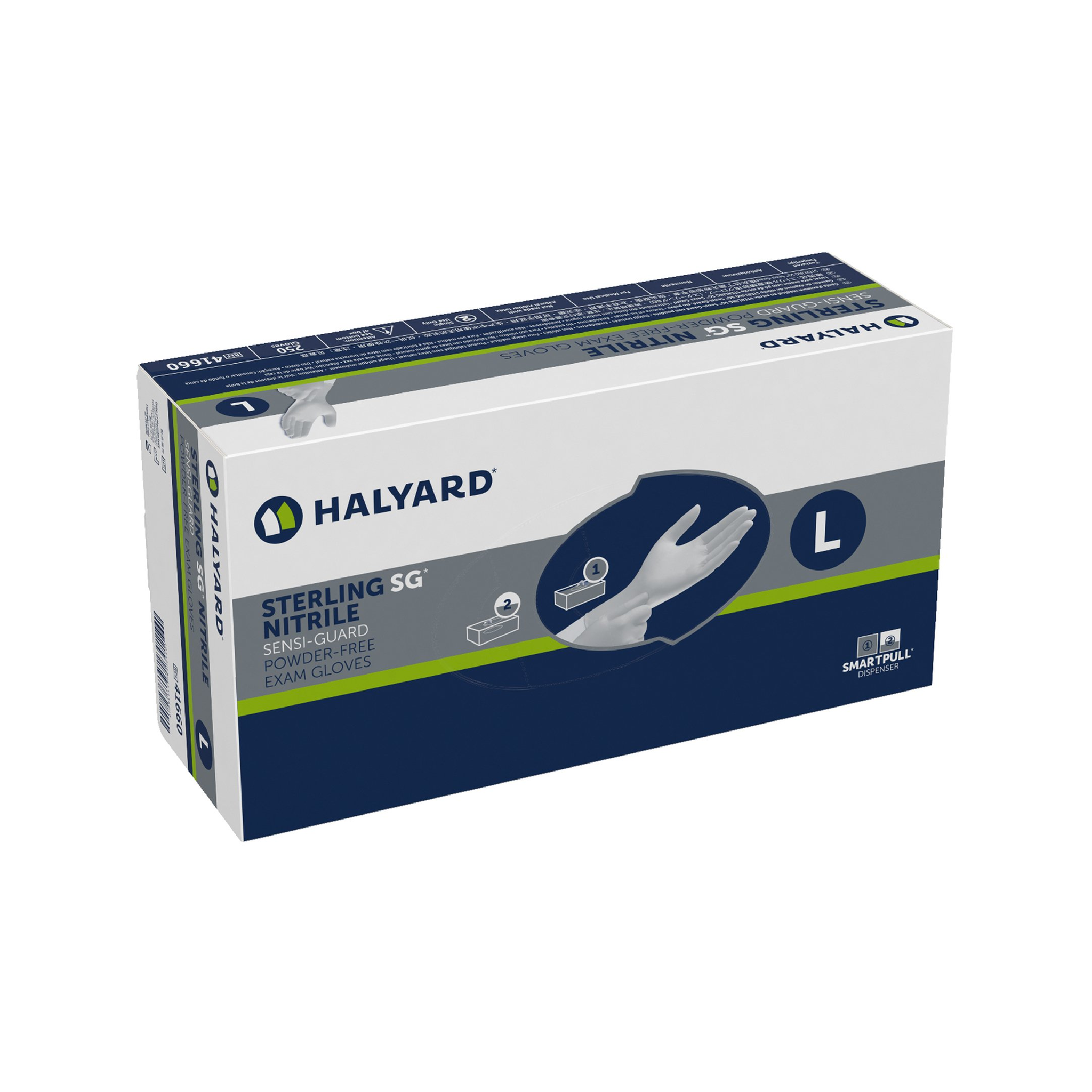 HALYARD® STERLING SG™ Sensi-Guard Nitrile Exam Gloves provide the ideal balance of durability, comfort, and tactile sensitivity. Designed for healthcare professionals, these gloves feature a unique nitrile formulation that offers superior barrier protection and the dexterity similar to natural rubber latex, without the risk of latex allergies. With an AQL of 1.0, they are less likely to have critical defects than other gloves, ensuring enhanced safety and performance. The gloves come in space-saving 250-count boxes, reducing waste and storage needs while maintaining the highest level of protection, including clearance for chemotherapy use. Perfect for a wide range of medical environments, these gloves combine comfort with reliability for daily use.