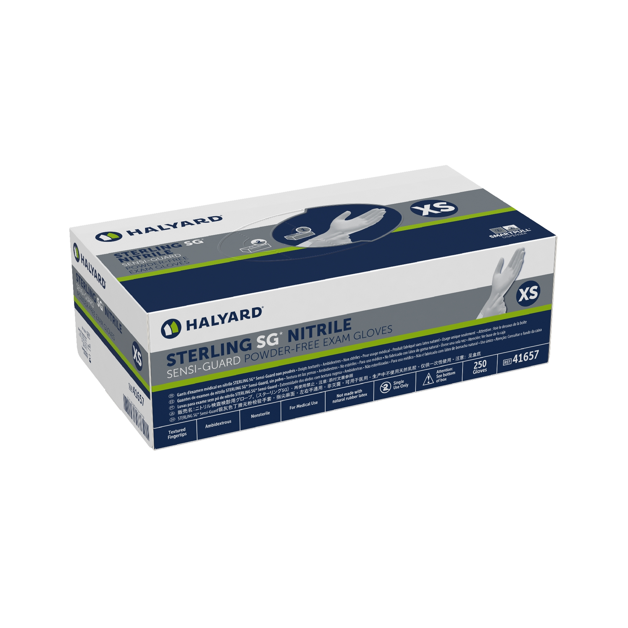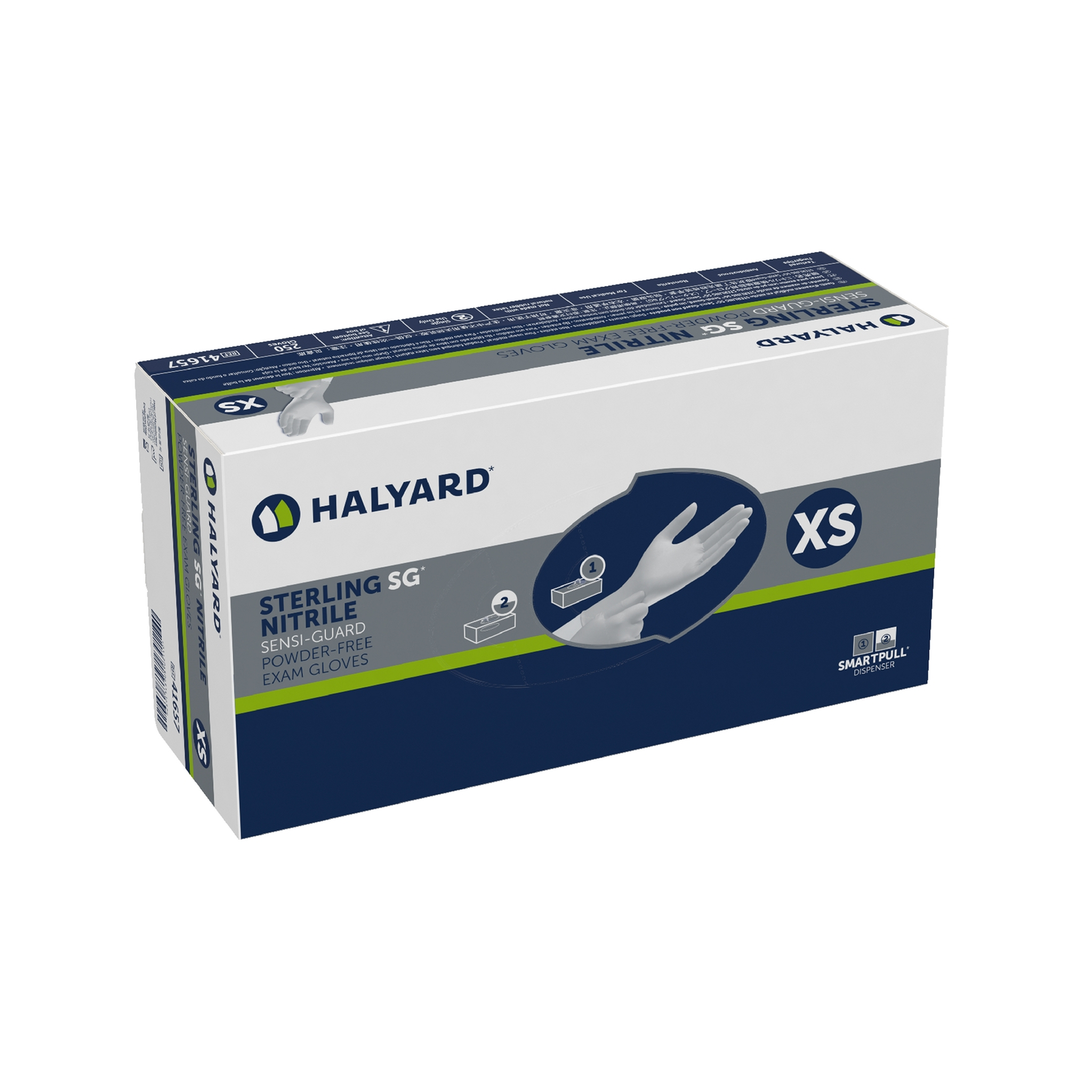 Halyard Sterling SG Nitrile Exam Gloves, Powder-Free 9.5" Cuff, Size XS