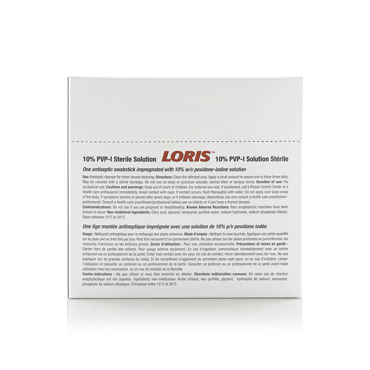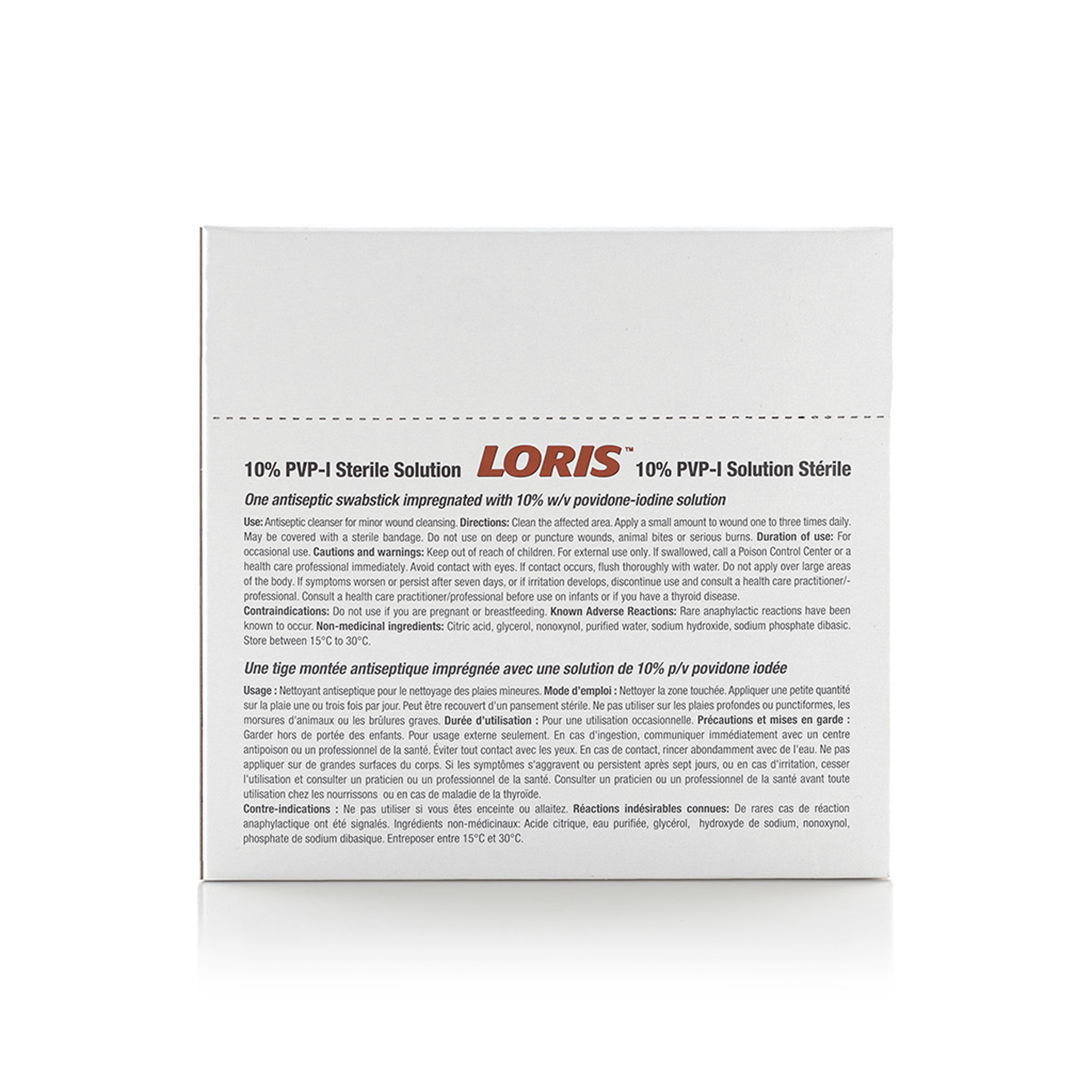 LORIS™ 10% PVP-I Antiseptic Sterile Solution Swabstick is a high-quality, single-use applicator designed for easy and effective antiseptic cleansing. Each sterile rayon-tipped swabstick is pre-moistened with a 10% W/V Povidone-Iodine solution (equivalent to 1% available iodine), providing fast-acting, broad-spectrum antimicrobial protection. Ideal for hospitals, clinics, and institutional settings, this alcohol-free, sting-free solution air dries quickly for convenient and comfortable use.