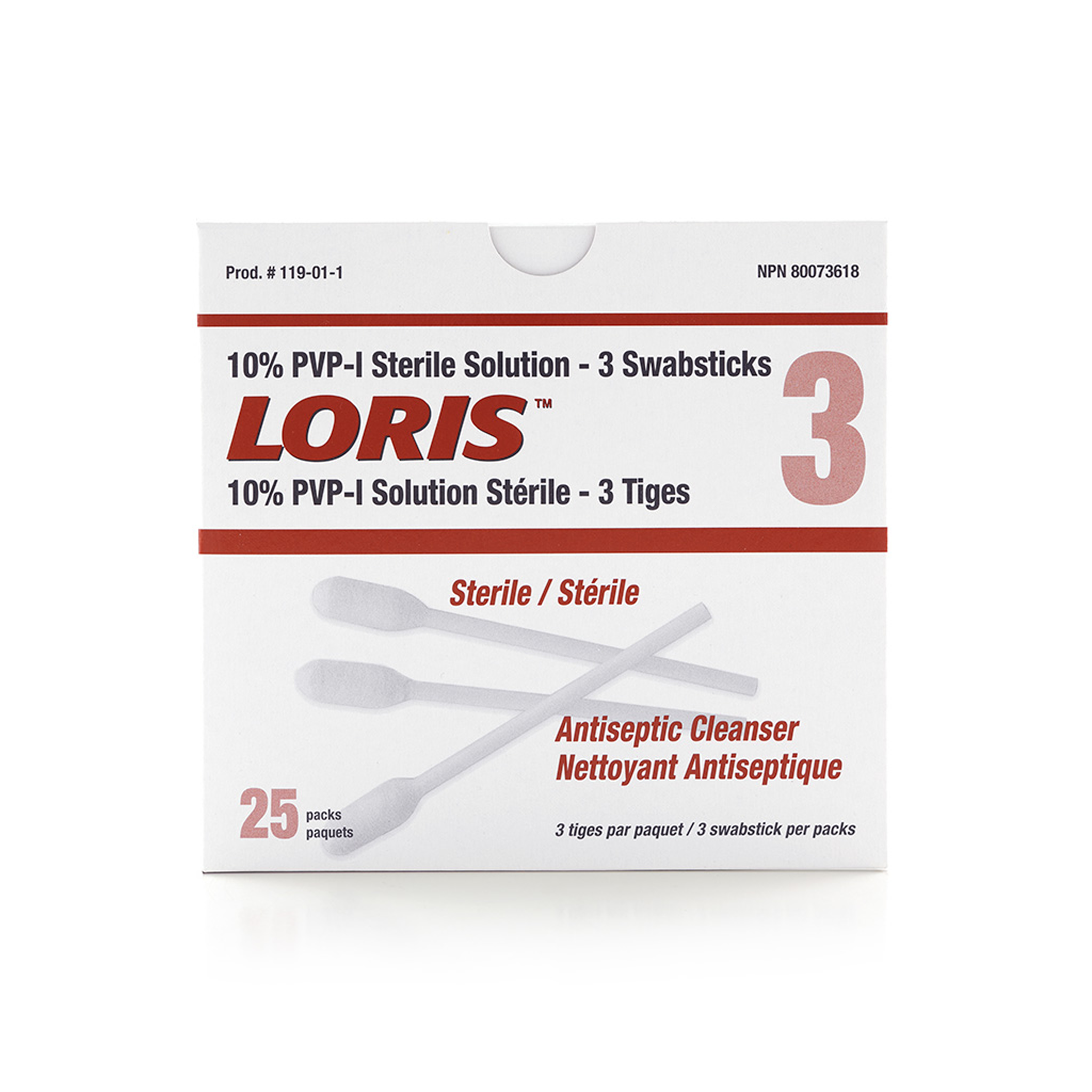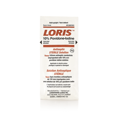 LORIS™ 10% PVP-I Antiseptic Sterile Solution Swabsticks are pre-moistened applicators designed for reliable and efficient antiseptic cleansing. Each rayon-tipped swabstick is saturated with a 10% W/V Povidone-Iodine solution (equivalent to 1% available iodine), offering broad-spectrum antimicrobial protection ideal for clinical and institutional use. Conveniently packaged in sets of three, these sterile swabsticks provide consistent performance for pre-procedural skin preparation and infection control.