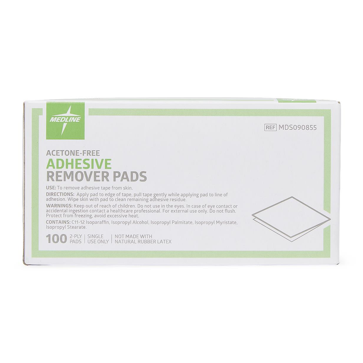 Specifications: Alcohol-based adhesive remover pads, textured and individually wrapped; 100 pads per box, 10 boxes per case.
