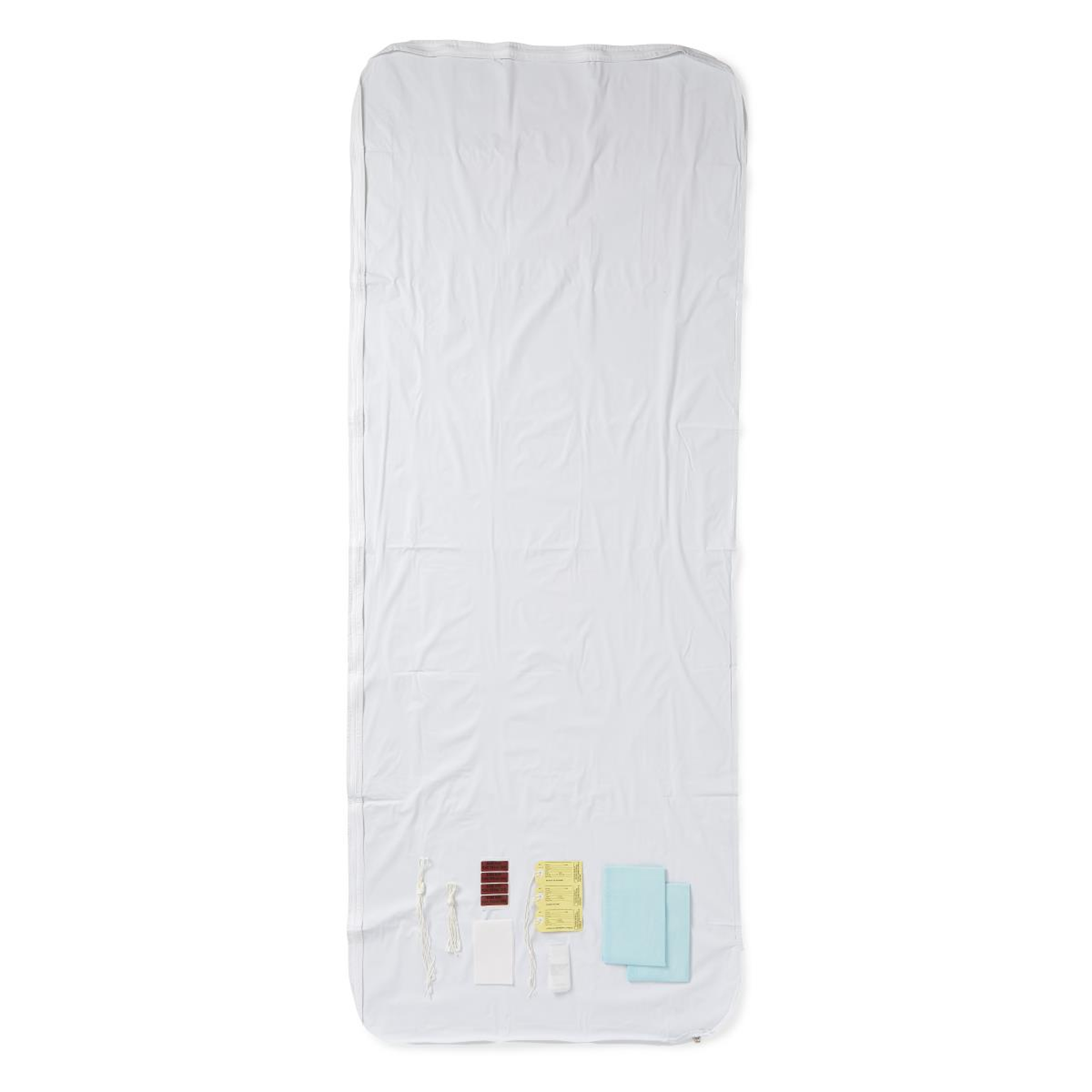 Specifications: Adult Post-Mortem Kit with metal wraparound zipper, 450 lb. capacity, 36" x 90", individually packaged; 10 kits per case.
