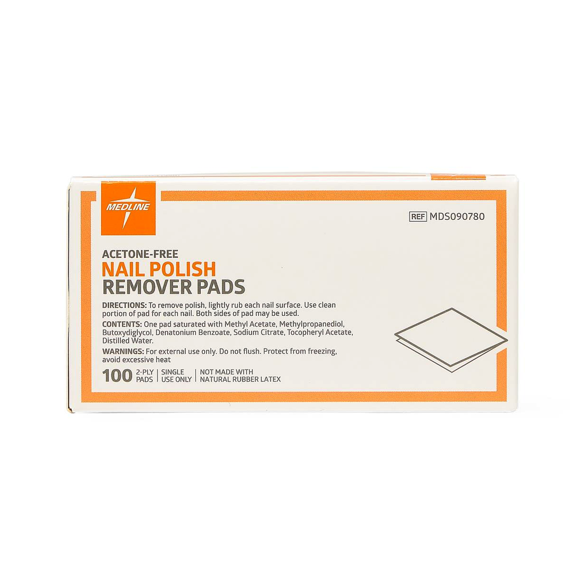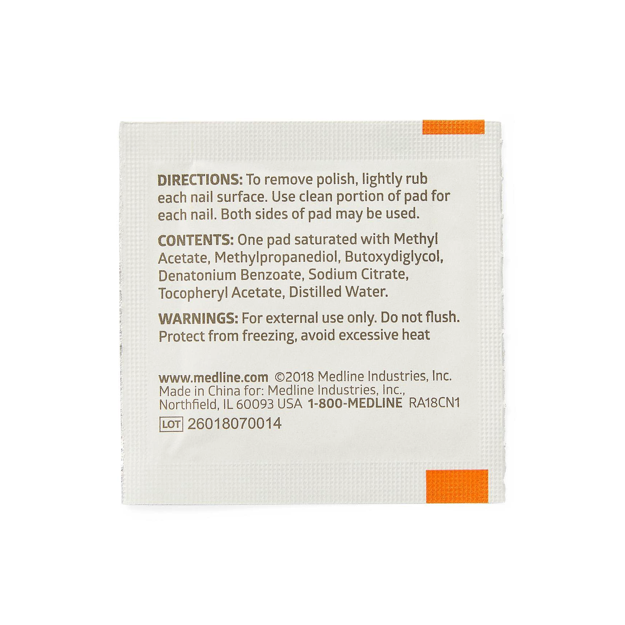 Medline® Nail Polish Remover Pads are convenient, individually foil-wrapped pads designed for quick and effective nail polish removal when monitoring of patient nail beds is required. The gentle, acetone-free formula helps protect nails and skin from drying or irritation while effectively removing polish from up to 10 nails per pad. Ideal for hospitals, clinics, and personal care use.