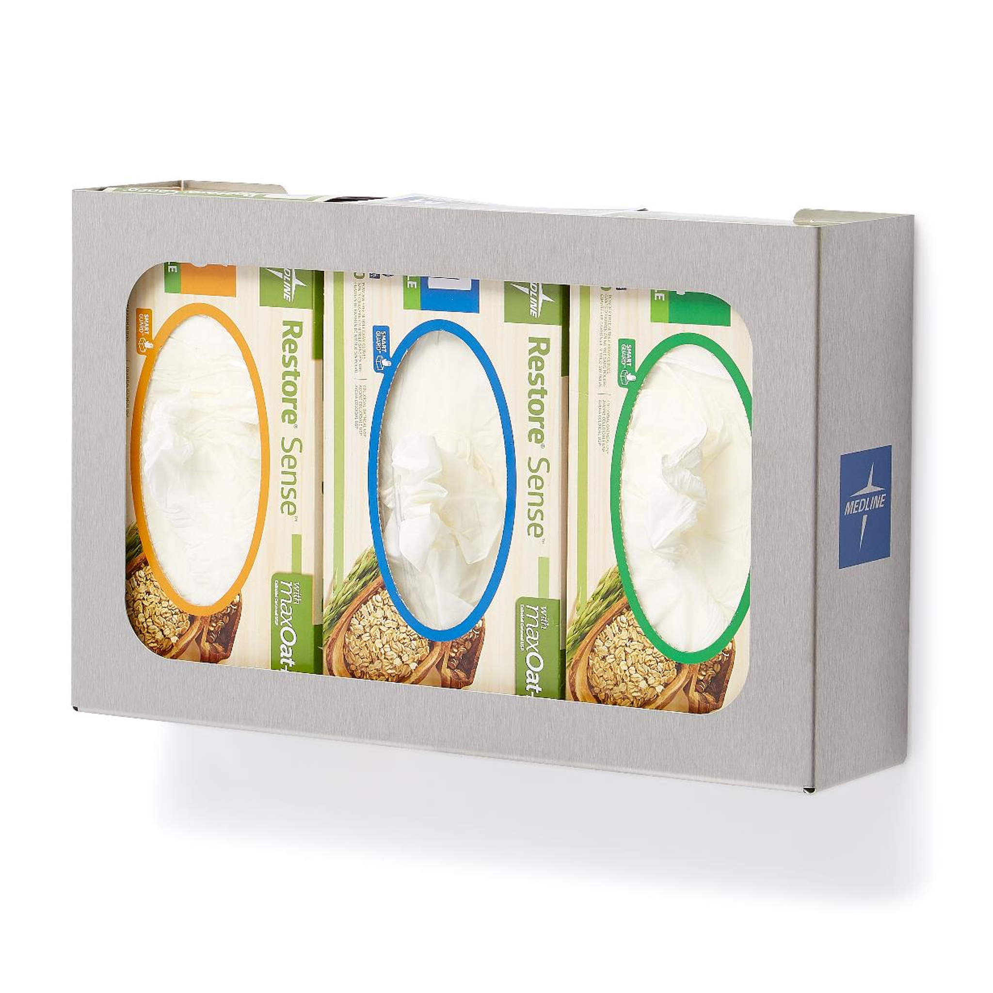 Medline Stainless-Steel Glove Dispenser – Triple Box securely holds up to three glove boxes for convenient, organized access in high-volume environments. Constructed from heavy-duty stainless steel, it can be wall-mounted horizontally or vertically to accommodate workflow needs.