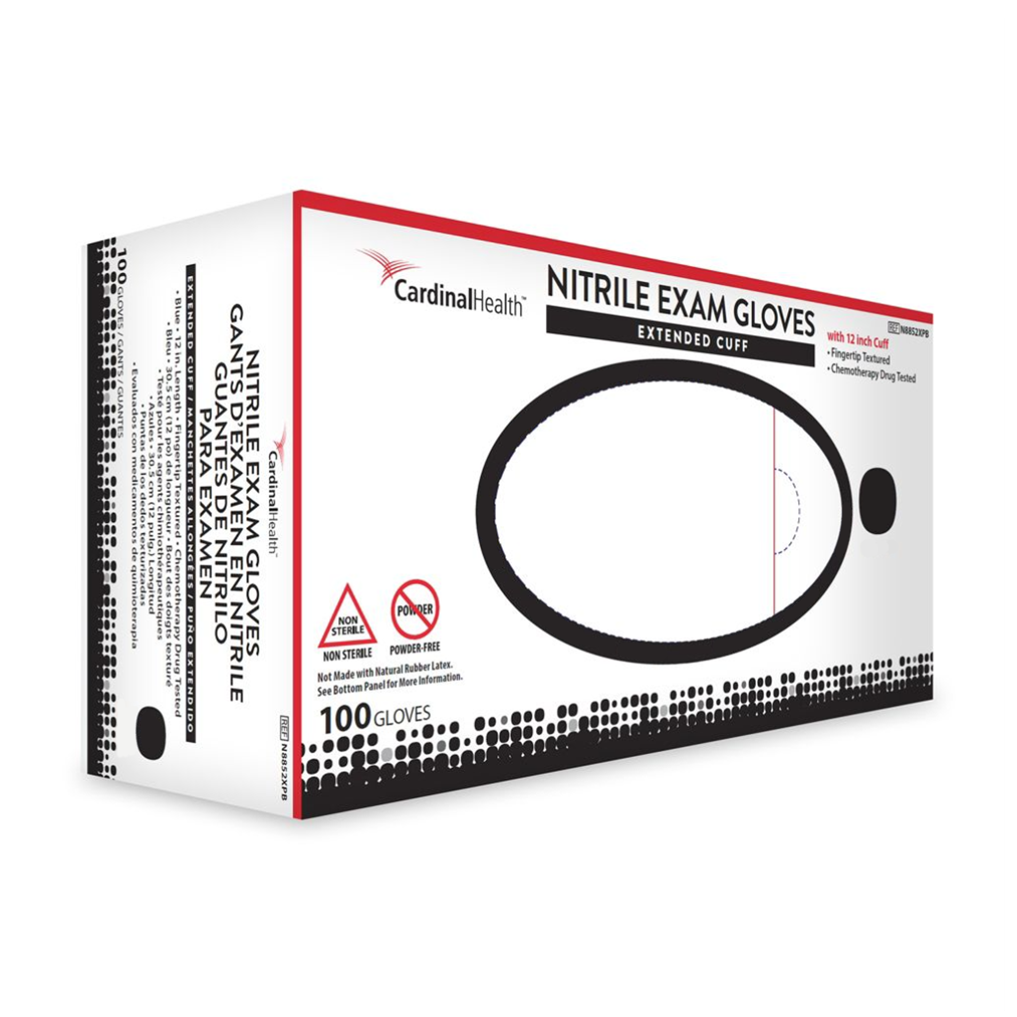 Cardinal Health™ Extended Cuff Nitrile Exam Gloves are designed for environments where additional coverage is required. With a 12-inch beaded cuff, these gloves help protect hands and wrists from spills or splashes while also resisting roll down. Durable nitrile construction provides dependable performance in high-risk settings.