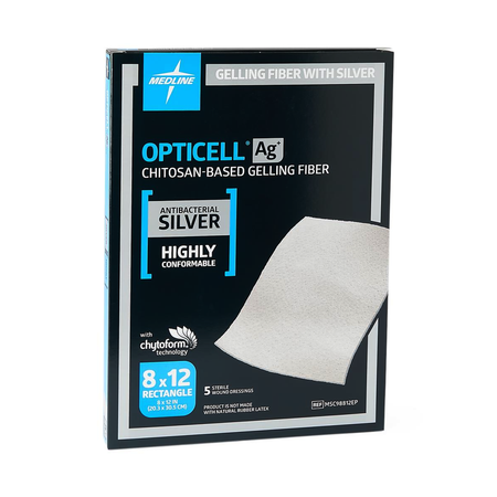 Opticell® Ag+ Silver Antibacterial Gelling Fiber Wound Dressings by Medline provide advanced moisture management and antimicrobial protection for moderate to heavily exuding wounds. Each dressing features Hydrofiber™ technology infused with ionic silver, which offers broad-spectrum antibacterial protection and helps prevent infection while maintaining a moist wound environment. The gelling fibers conform intimately to the wound bed, minimizing dead space and promoting faster, cleaner healing.