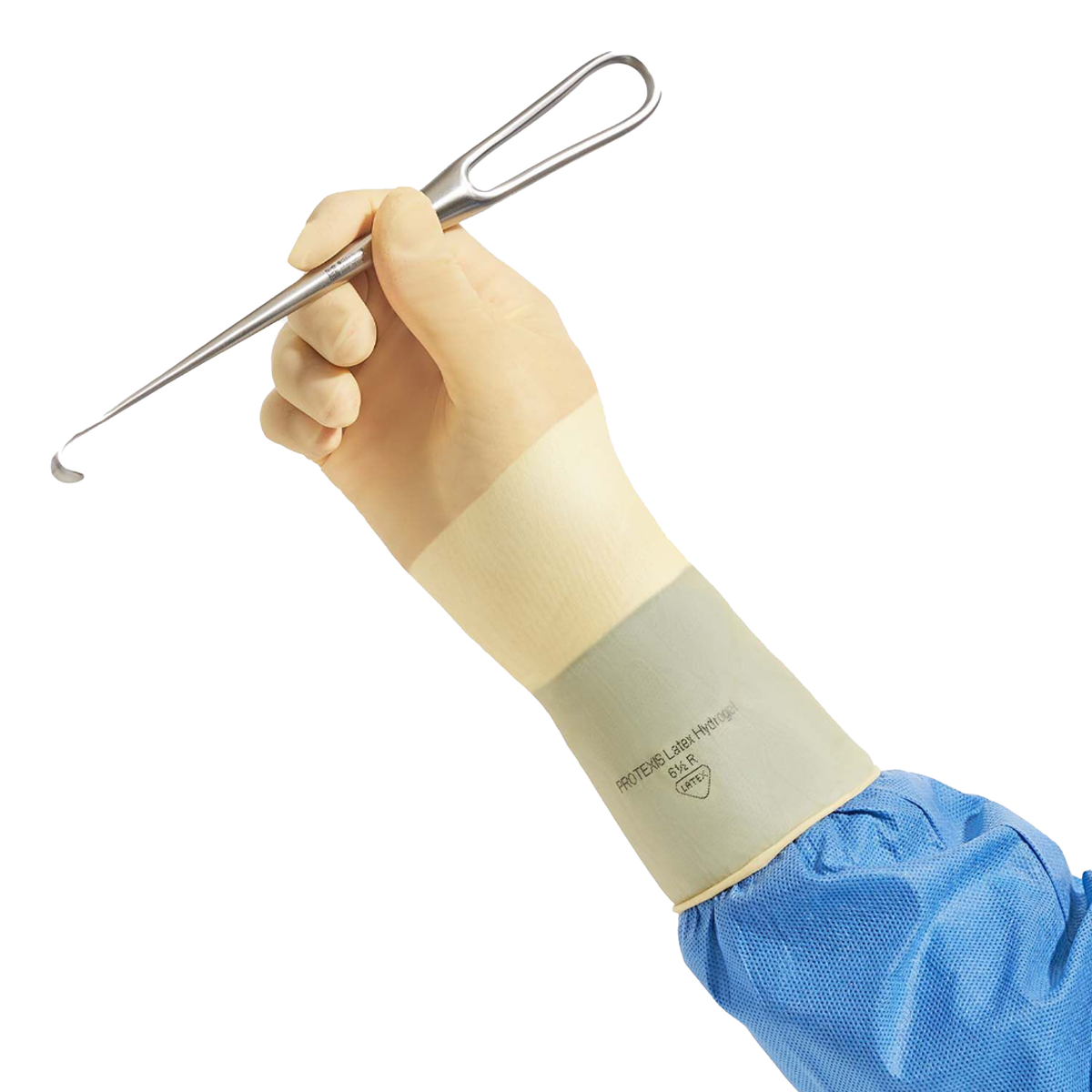 Engineered with an anatomical hand mold featuring an independent thumb design, Protexis™ Latex Hydrogel gloves ensure a natural fit and freedom of movement. The interlocking beaded cuff minimizes roll-down while maintaining a secure hold during demanding surgical tasks.