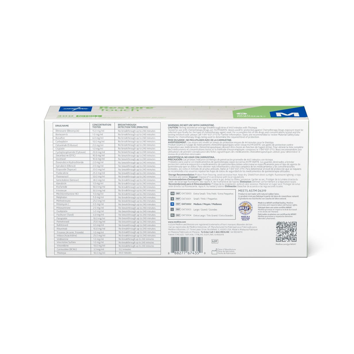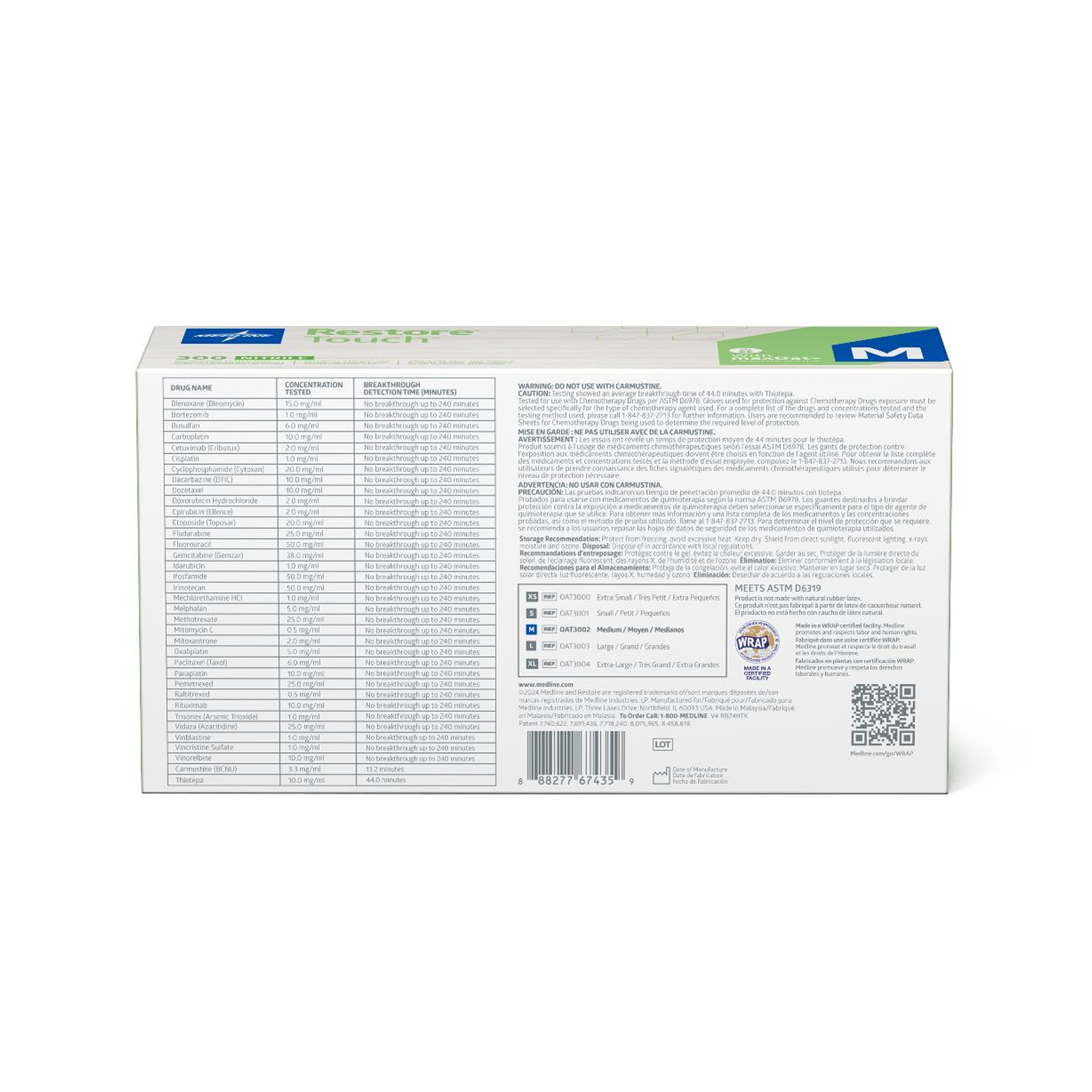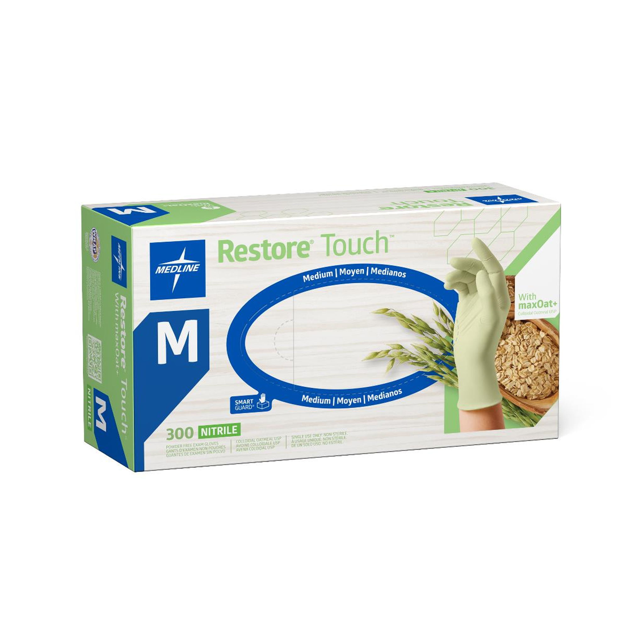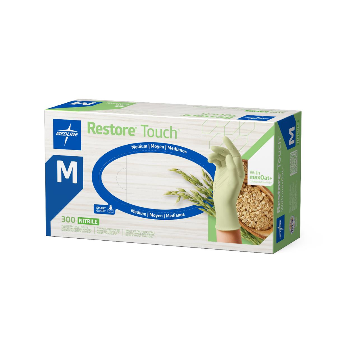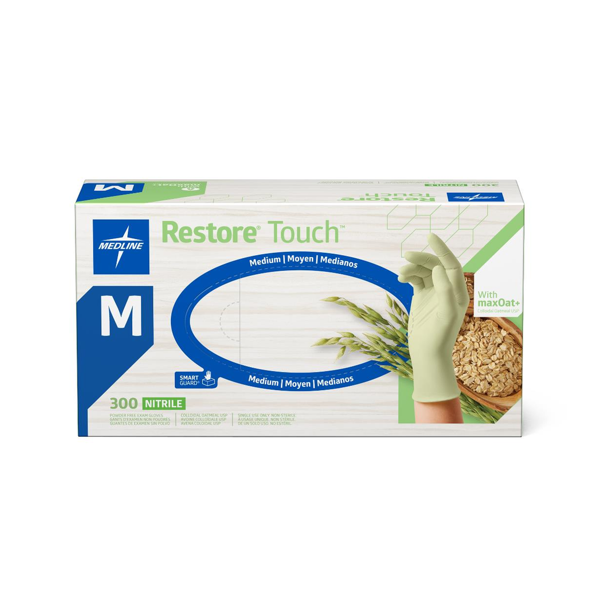 Specifications: Restore® Touch Nitrile Exam Gloves with Oatmeal, Medium; chemo-rated; Gluten-Free certified; 3,000 per case.