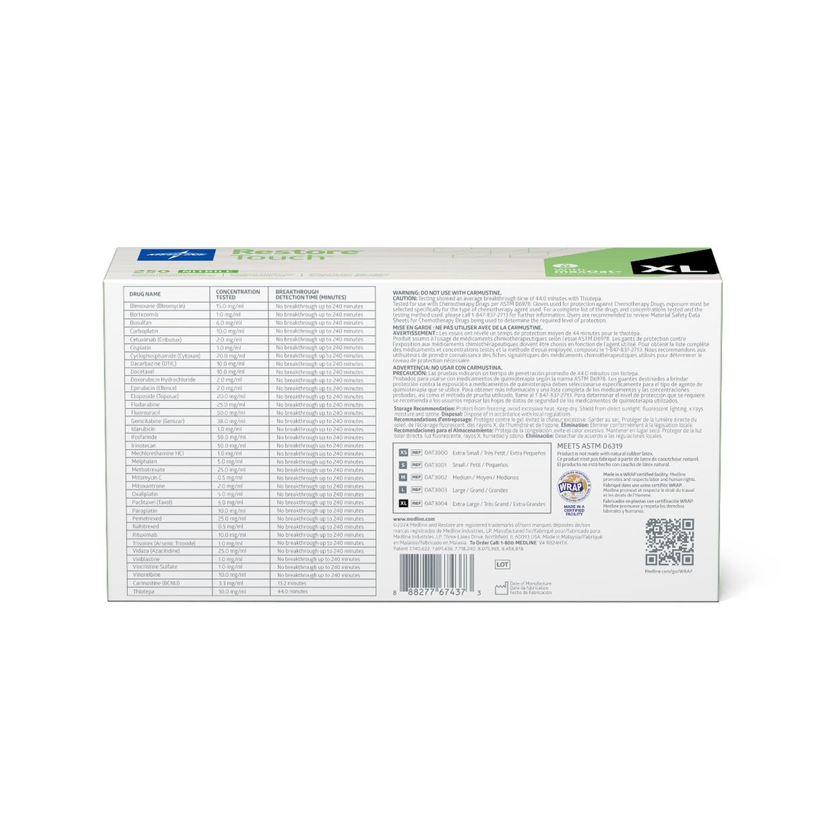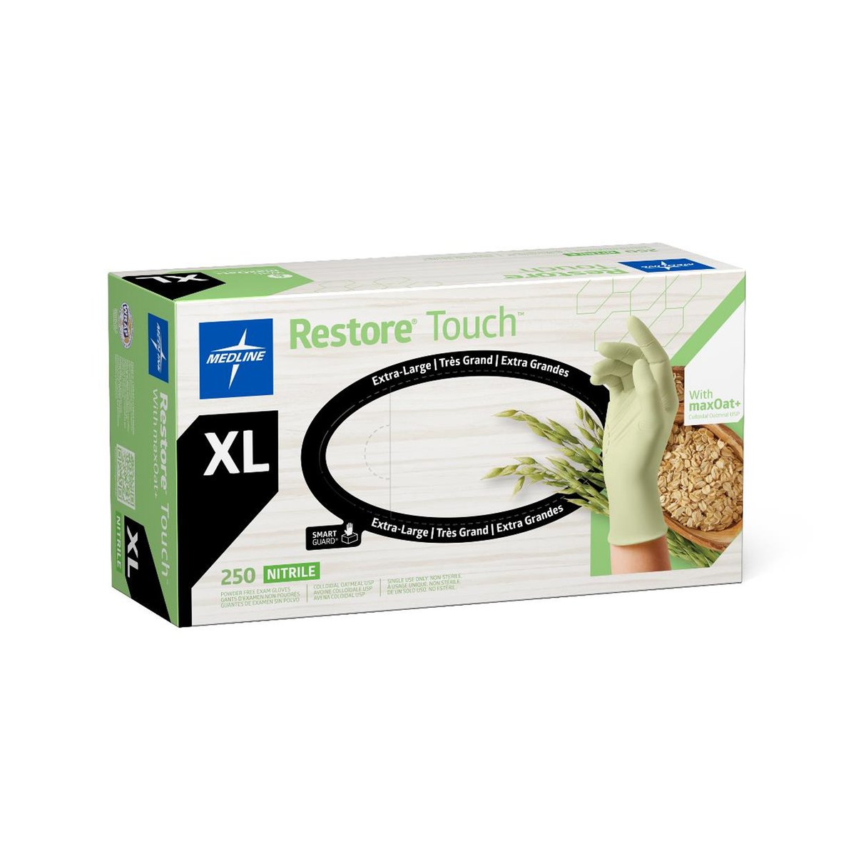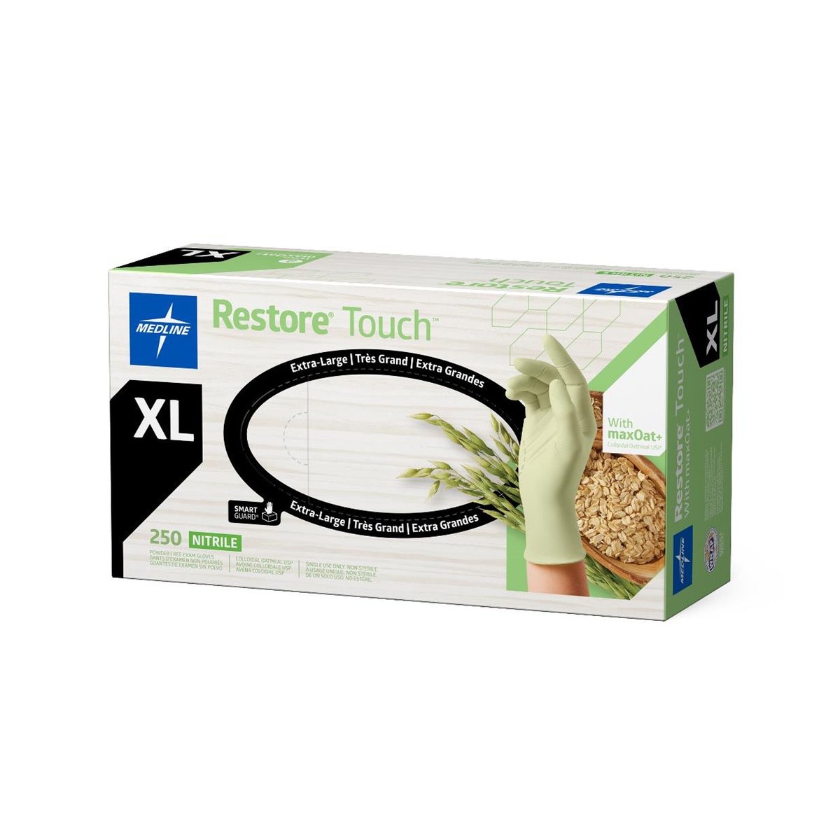 Specifications: Restore® Touch Nitrile Exam Gloves with Oatmeal, X-Large; chemo-rated; Gluten-Free certified; 2,500 per case.