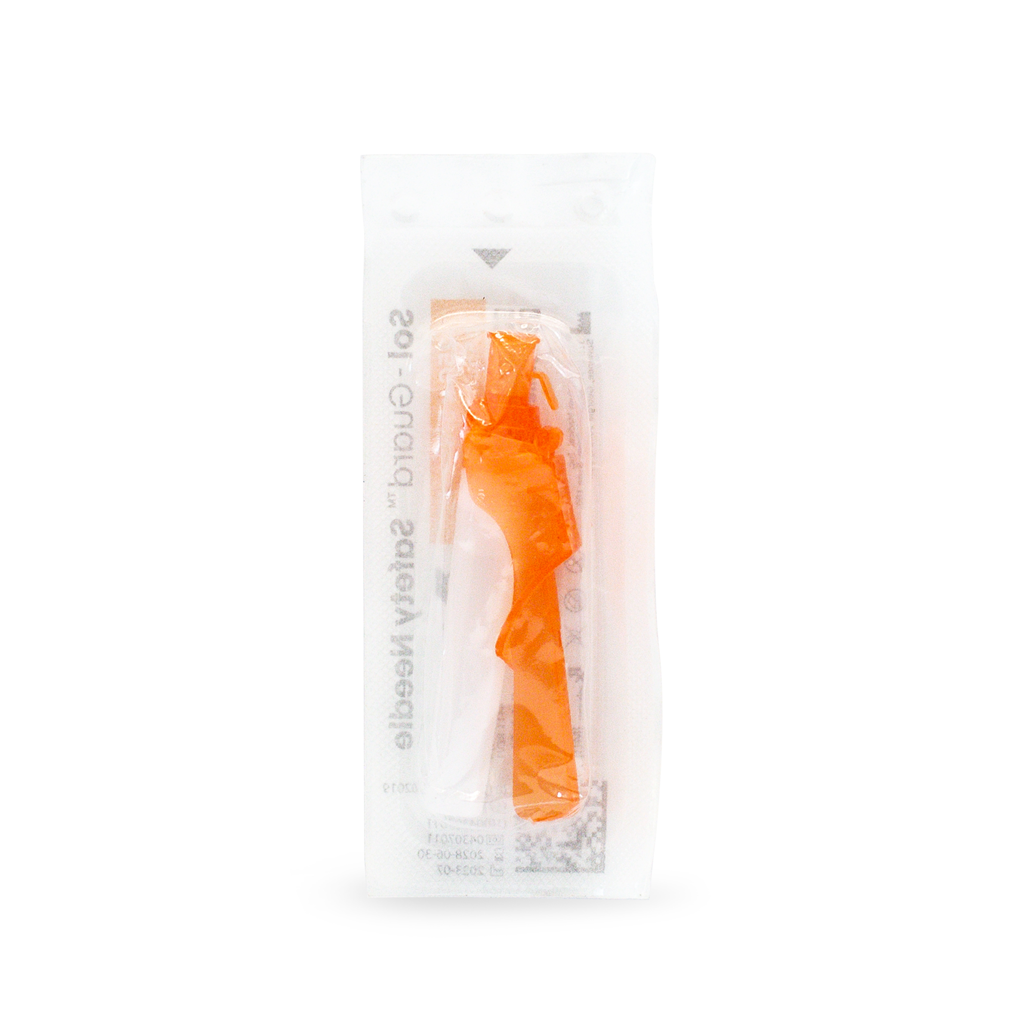 The Sol-Guard® Safety Needle is designed with an intuitive safety shield mechanism that encapsulates the needle after injection to help prevent needlestick injuries. Its protective arm can be easily activated with one hand, while color-coded components provide clear gauge identification for clinical efficiency.
