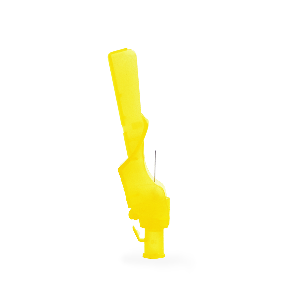 The Sol-Guard® Safety Needle is designed with an intuitive safety shield mechanism that encapsulates the needle after injection to help prevent needlestick injuries. Its protective arm can be easily activated with one hand, while color-coded components provide clear gauge identification for clinical efficiency.
