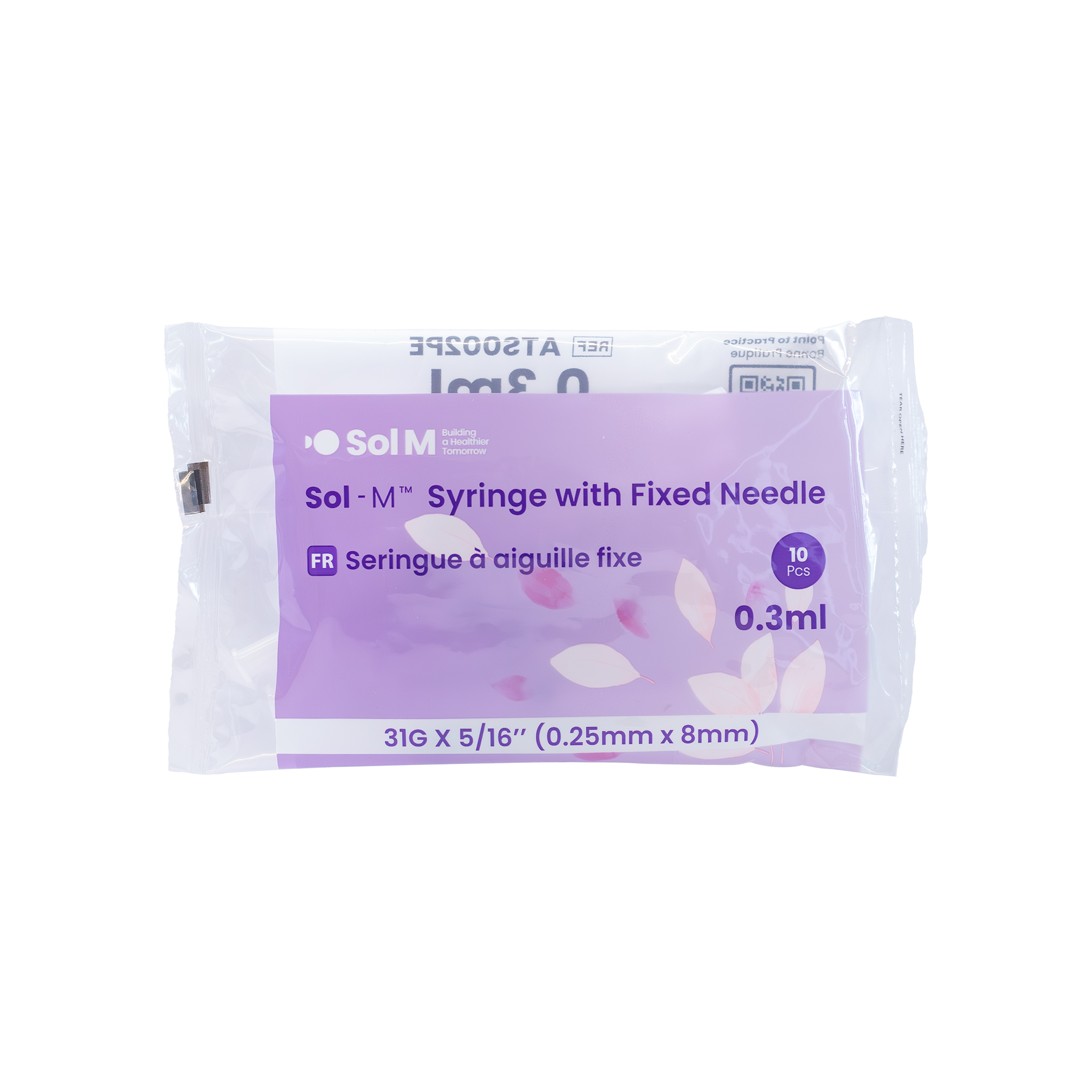 Sol-M Cosmetic 0.3ml Syringe w/ 31G x 8mm Fixed Needle *PE Bags