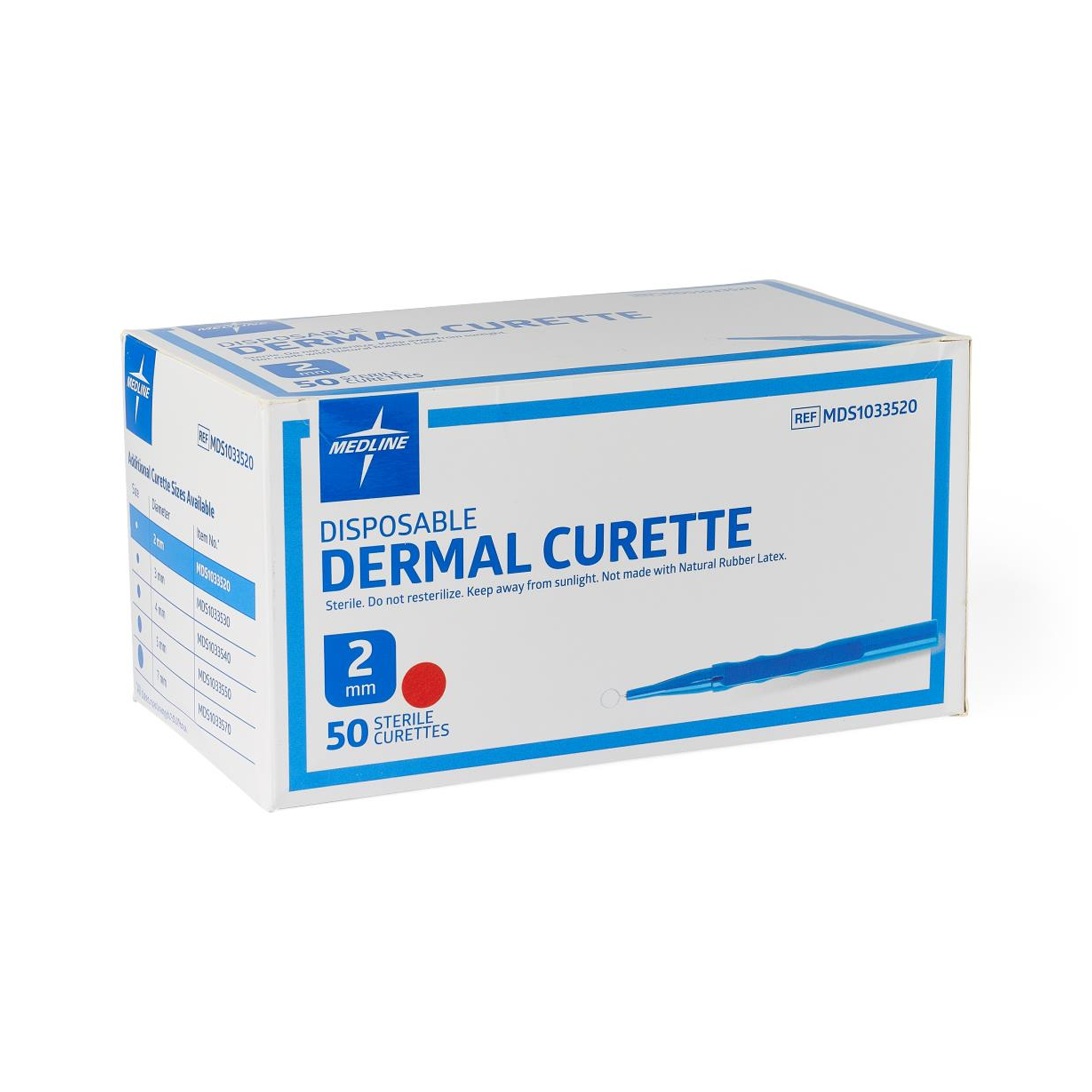 Medline® Sterile Dermal Curettes are precision surgical instruments crafted for routine dermal procedures. Featuring an ergonomically designed easy-grip barrel and pressure assistance platform for enhanced control, these curettes incorporate a symmetrically ground beveled stainless steel cutting edge for clean, efficient excisions.