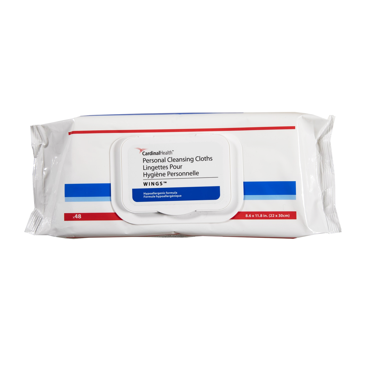 Wings Pre-Moistened Personal Cleansing Cloths, 8.6" x 11.8" (22 x 30 cm) 48 Wipes per Softpack