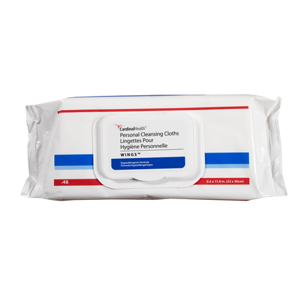 Cardinal Health™ WINGS™ Personal Cleansing Cloths are strong yet soft pre-moistened wipes designed to effectively remove urine and feces from even the most fragile skin. Ideal for incontinence care and quick cleanups, these cloths help promote patient dignity and comfort. Infused with vitamin E, chamomile, and aloe vera, the gentle, hypoallergenic formula cleanses and soothes without the need for rinsing. Each resealable softpack helps prevent drying and reduces the risk of cross-contamination.